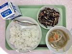 今日の給食の献立は、豚汁、ひじき炒め、焼きししゃも、ごはん、牛乳でした。