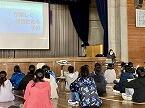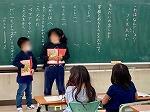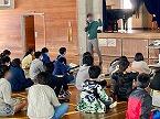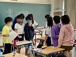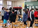 2校時に次年度入学する園児を招待してのお招き会が体育館で行われました。各教科の授業や休み時間、給食時間等の学校生活の様子を、クイズ形式で1年生が上手に伝えていました。最後は、1年生の教室フロアを案内し、教室やワークスペース、トイレ、ロッカーの使いかたなどを確認していました。