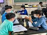 3年1組は理科で磁石の学習のまとめに取り組んでいました。2組は警察の仕事について調べていて、110番して警察が到着するまでの流れを図を使って確認していました。