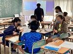 5年1組は円と正多角形の関係を学習していて、円の中に正六角形を描く方法について図形の特徴をもとに考えていました。2組は家庭科で「ゆでる調理をしよう」ということで、ゆでる料理の良さしたいや調理に使う器具等について確認していました。