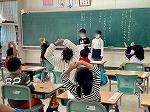 5年1組は「みはじ」の式を使いながら、「速さ」のまとめ問題に取り組み、学習内容の復習をしていました。2組は「Who is behind you ?」のフレーズを使い、男女仲よく楽しみながら伝言ゲームに取り組んでいました。