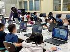 4年1組は総合学習で取り組んでいるハチミツに関連して、ミツバチについて調べていました。その後は、調べたことを発表名人というソフトを使ってプレゼンするということです。2組は社会科で「国際交流に取り組む浦添市」ということでJICA沖縄について調べる計画を立てていました。