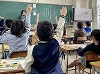 2年1組は運動場でドッジボールに取り組んでいました。活動後の振り返りでは、「レベルアップするにはどうしたらいいのか」などの問いに対し、子ども達は自分の考えを発表し交流していました。2組は道徳「つくえふき」という教材文を読んで「好き嫌いに左右されずに生活するにはどうしたらいいのか」について自分の意見を発表しあいながら考えを深めていました。