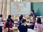 5年1組は家庭科の学習で調理実習に向けて、野菜のゆで方について動画を見ながら確認していました。2組は英語の1年間の復習として「when is your birthday ?」「What do you want for your birthday ?」等のフレーズに対する返答の仕方を確認していました。