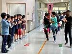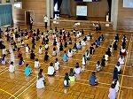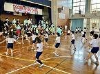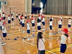 天候不良により、延期になっていた1・2年生の縄跳び大会が5校時に体育館で行われました。2年生の体育係さんが中心となって準備体操を行い、2年生から大会がスタートしました。自分の番を待っている学級は、一生懸命跳んでいるお友達に「頑張れ~」と大きな声援を送っていました。
