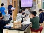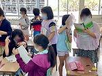 4年1組は図工で飛び出すしくみを上手に使いながら、幸せを運ぶカード作りに取り組んでいました。2組は水が冷えて氷になるとき、水の温度や様子がどのように変化するのかを確認するための実験方法を確認していました。