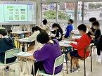 3年1組は、英語「Who are you ?」の読み物を場面毎に役割を決め、相手に伝わるように台詞を真似て発表する活動に取り組んでいました。2組は、そろばんを使ってくり上がりのないたし算に挑戦していました。親指と人差し指を使って、1玉・5玉を上手にはじいて計算していました。