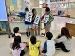 5年生は来年入学してくるこども園の年長さんとの交流を楽しみました。2校時は1組とそら組が、3校時は2組とほし組がそれぞれ交流していましたが、各学級の工夫を凝らした内容に園児は笑顔で楽しんでいました。