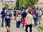 離任式後に離任される先生方が各学年のフロアを回りました。そこで、プレゼンターの児童から花のプレゼントが手渡されると、これまで涙をこらえていた児童の目から大粒の涙がこぼれていました。とても心に残るお別れの式となりました。