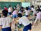 また、5校時には宮古島の東小学校から下里先生が算数の指導方法を学ぶため、6年1組の授業を参観にきていました。子ども達は、突然のお客さんに緊張することなく、自分の考えを積極的に発表しながら問題解決を図っていました。