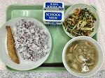 今日の給食の献立は、ししゃもフライ、小松菜炒め、ジャガイモのみそ汁、ゆかりごはん、牛乳でした。