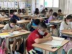 5年1組は1学期前半の最後に行うお楽しみ会の話し合いをしていて、たくさんの意見の中から折り合いつけながらみんなで楽しむゲームを決めていました。2組は小数のわり算について習得を図るためのプリントに取り組んでいました。