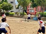 4年1組は運動場でティーボールを楽しんでいました。進んだ塁の分だけ点数になるということで、遠くまでボールを飛ばせるようにねらいを定めて思い切りスイングしていました。2組は商が2けた、3けたになるわり算の習熟問題に取り組んでいて、わる数、わられる数の数が大きいので、商の見当をつけるのに苦労しながらも頑張っていました。