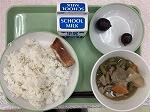 今日の給食の献立は、いりどり、魚のマーマレード焼き、ぶどう、麦ごはん、牛乳でした。