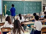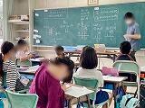 2年生は算数に取り組んでいました。1組は、長さのたしざんの問題に取り組んでいて、先生から花丸をもらって嬉しそうでした。2組は2けた+2けた(34+12)の筆算の仕方に確認し、位に気をつけながら計算練習に励んでいました。