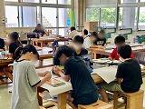 6年1組は読書感想画に取り組んでいて、本を読んで印象に残った場面を想像しながら上手に描いていました。2組は理科で「生き物のくらしと環境」について学習していて、今日は生き物と食べ物のつながりについて考えていました。
