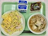 今日の給食の献立は、冷やし中華、キムチスープ、牛乳でした。