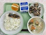 今日の給食の献立は、さんまのみぞれ煮、ひじきとレンコンのサラダ、ごま味噌豆乳汁、もちきびごはん、たんかん、牛乳でした。