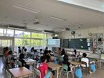 今日は、オンラインで校長先生のお話がありました。みんな静かに聴いていました。