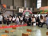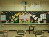 【式に向けての練習風景】 【新一年生のクラス発表】 【体育館入口の様子】 【1年生ワークスペース・教室の様子】