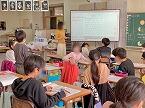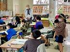 4年1組は帯分数が交じった分数の足し算と引き算の問題に取り組んでいました。子ども達は「最初に」「次に」というワードを使って、自分の考え方を上手に発表していました。2組は大きさが等しい分数を探そうということで、1を二等分や三等分などされた線分図をたくさん用意し、大きさを見える化して内容理解を図っていました。
