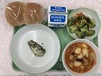 給食週間最終日の献立は、マヒマヒのハーブ焼き、ブロッコリーサラダ、ソーセージと豆のサラダ、なかよしパン、牛乳でした。