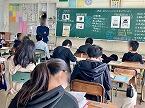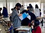 6年1組は「戦後、日本はどのような改革を行ったのか」という問いに対して、戦争中や戦後の写真資料等を手がかりに考えていました。どのような改革を行ったのかを夕飯時にきいてみるのもいいですね。2組は比例の学習のまとめとして、友達と協力しながら2本の比例のグラフから読み取れることを活用して問題を解いていました。