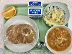 今日の給食の献立は、ちりめんチーズグラタン、トマトと大根のスープ、あみパン、たんかん、牛乳でした。