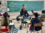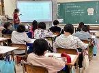 4年1組は木琴とリコーダー、互いの音をよく聴き合い、曲の気分を感じ取って「ジッパ ディー ドゥー ダー」の曲を合奏していました。2組は直方体の展開図の描き方について学習していました。電子黒板を使って対応する辺や頂点を確認しながら進めていました。