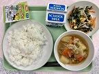 今日の給食の献立は、肉じゃが、ほうれん草サラダ、納豆、ごはん、牛乳でした。