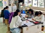 1年生は来週水曜日の新1年生のお招き会に向け、飾り付けやプレゼントするメダル作りに励んでいました。真剣な表情で丁寧に仕上げていました。