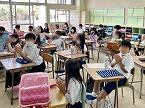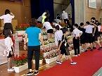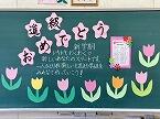 3校時には明日の入学式に向けた準備が行われ、高学年は体育館の会場設営、低中学年は校舎の外回りをきれいにしていました。