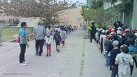 今日は、天久小学校みんなで書き初めの日!