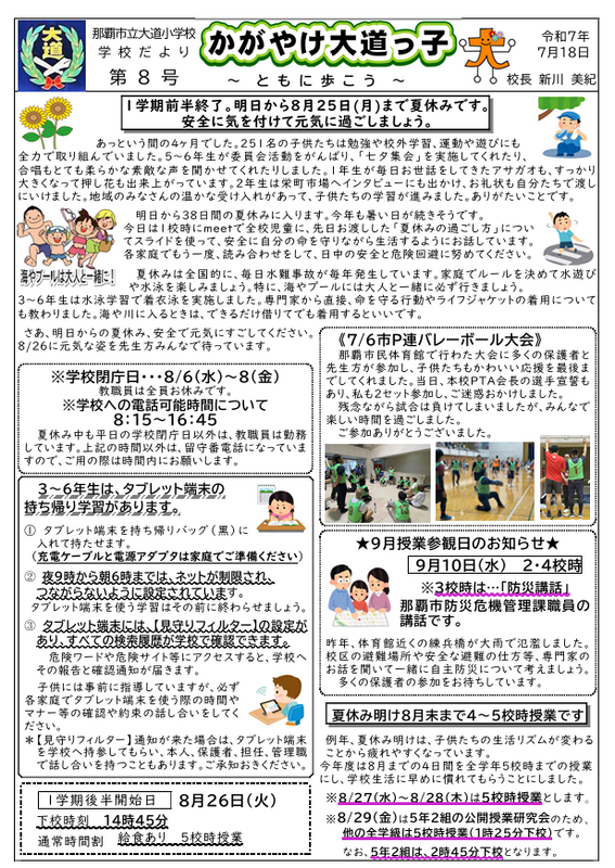 R7学校だより「かがやけ大道っ子~ともに歩こう~」第8号