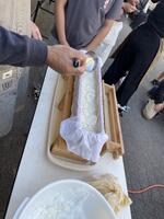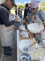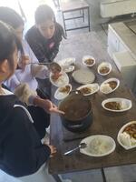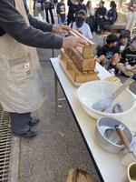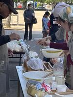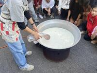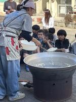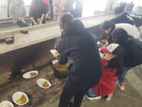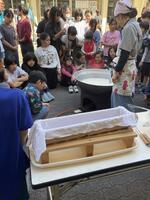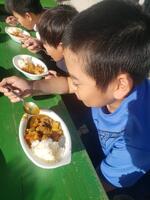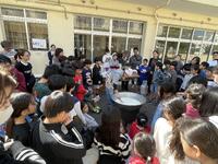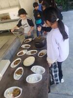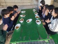さあ、いよいよ試食タイム。保護者が一人ずつ継ぎ分けてくださいました。