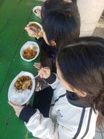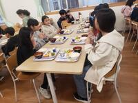 朝の集いの後、朝食です。