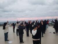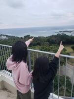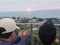 頂上付近で、先に来ていた300名くらいの外国人学生に子供たちは英語で「Hello.」とあいさつしたり、「インタビューOK?」と聞いて質問したりして、つかの間のコミュニケーションを楽しんだようです。とっても積極的にしたそうです。