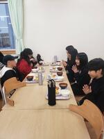みんなで美味しく食べた後、終わりの会で、青ヒグの種まきからずっとお世話になってきた新田さんと由利さんにお礼の言葉や一連の学習で学んだこと、今日の豆腐づくりで考えたり感じたことを伝え合いました。