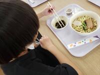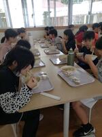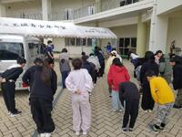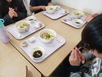 お昼ご飯は、沖縄そば。食事の後に体育館を掃除して帰ってきたそうです。