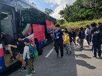 いよいよバスに乗って帰校です。