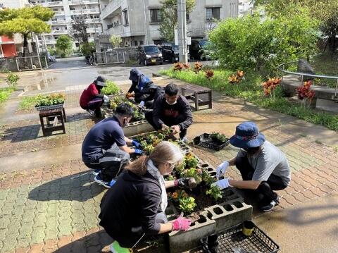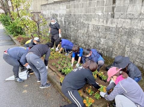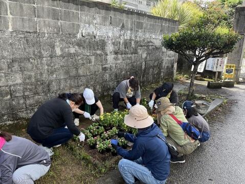 校門周辺の花壇にも、いろいろな苗を植えましたので、きれいに育ってくれることを祈ります。
