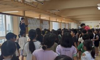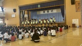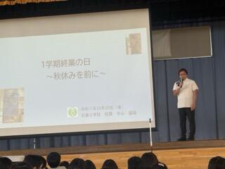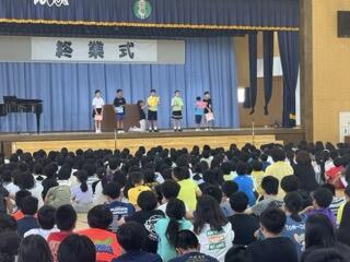 1年生と4年生の代表による1学期のふりかえりの発表と、校長先生のお話がありました。