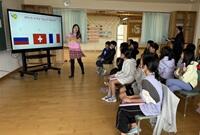 ほかの学校から、外国語の先生たちが来てくださり、いろんな国のことを教えてくれました。