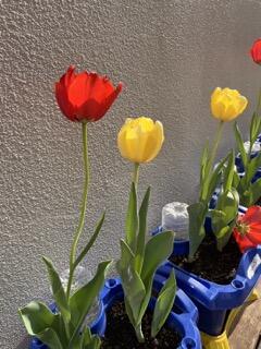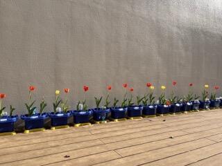 中庭では1年生が育てているチューリップが綺麗に咲いていました。