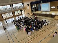 今日はバレンタインデーということで?6年生は学年レクを兼ねて体育館で給食やおやつを食べたそうです。いい思い出になったかな?