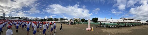 嵐のような大雨とコロナ禍を乗り越えて、5年ぶりに全校児童が一堂に会して運動会を行うことができました。