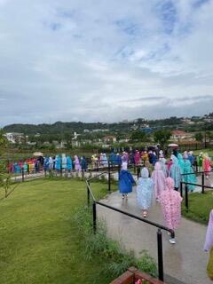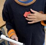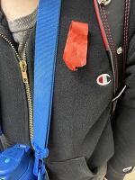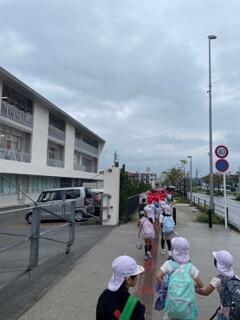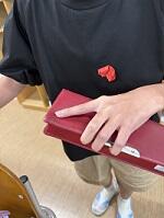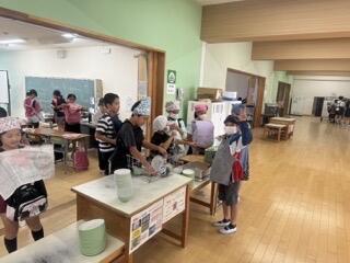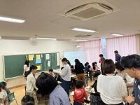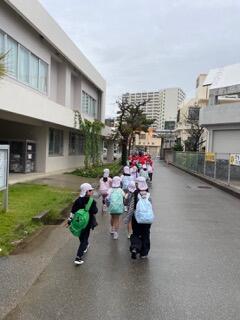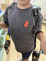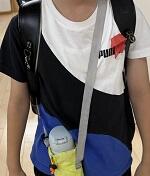 4年生が、ランドセルに水の入ったペットボトルを入れて背中ではなく前の方にかけて体験したようです。