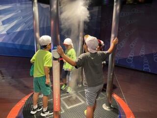 太陽の光を鏡に反射させて協力して重ねるなど、実験を楽しんでいました。