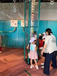 キンボールの大きいボールを使って親子で楽しくゲームできたそうです。