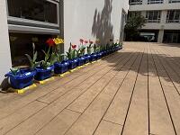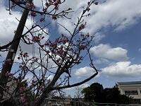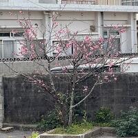 寒いですね。石嶺小の桜を見て春を感じてください。